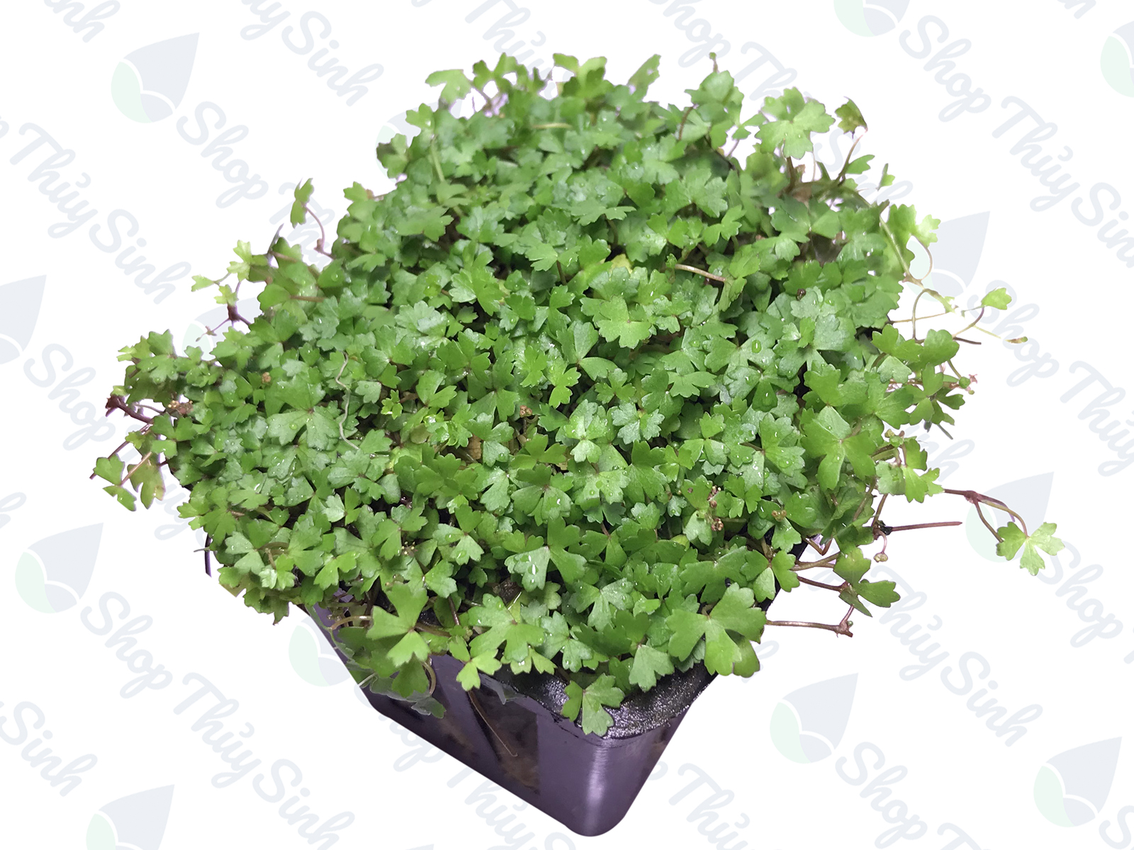 - Cây có thân bò ngang, lá nhỏ dạng tròn giống cây rau má, tạo thành một lớp phủ xanh tươi mát trong bể thủy sinh.